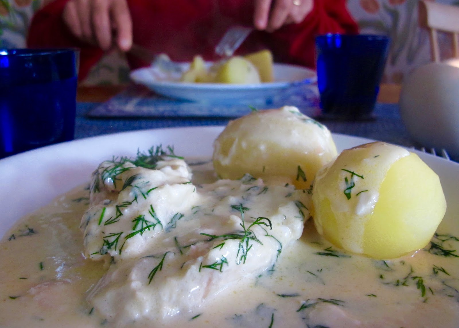 Strö färsk nyklippt dill över fiskpannan och servera till nykokt potatis.