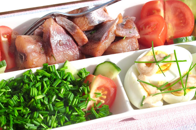 Hur gott är det inte med den första färskpotatisen till matjessill, gräddfil, ägghalva och gräslök i solsken!