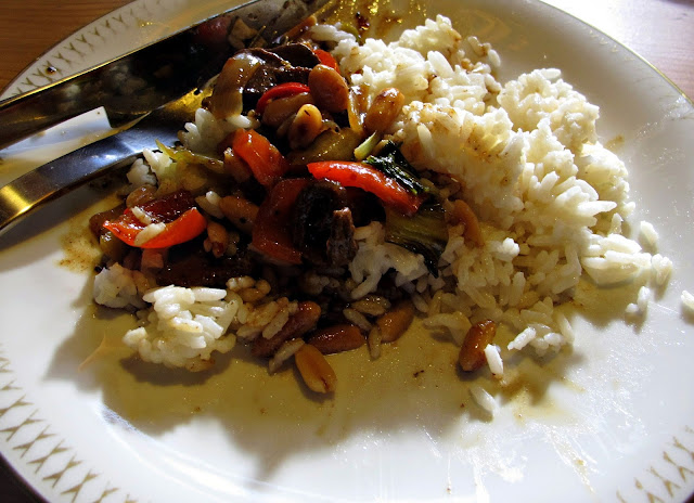 Thailändsk biffwok med pak soi, ingefära och jordnötter... very spicy!!