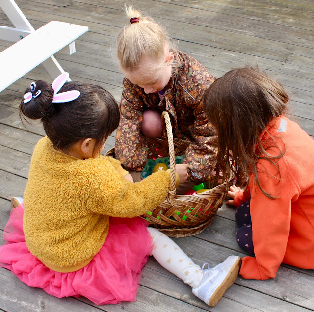 Efter maten var det dags för äggjakt och då blev det full fart i trädgården!