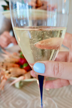 Vi fick även en festlig kväll... Prosecco i glasen och massor av skaldjur!