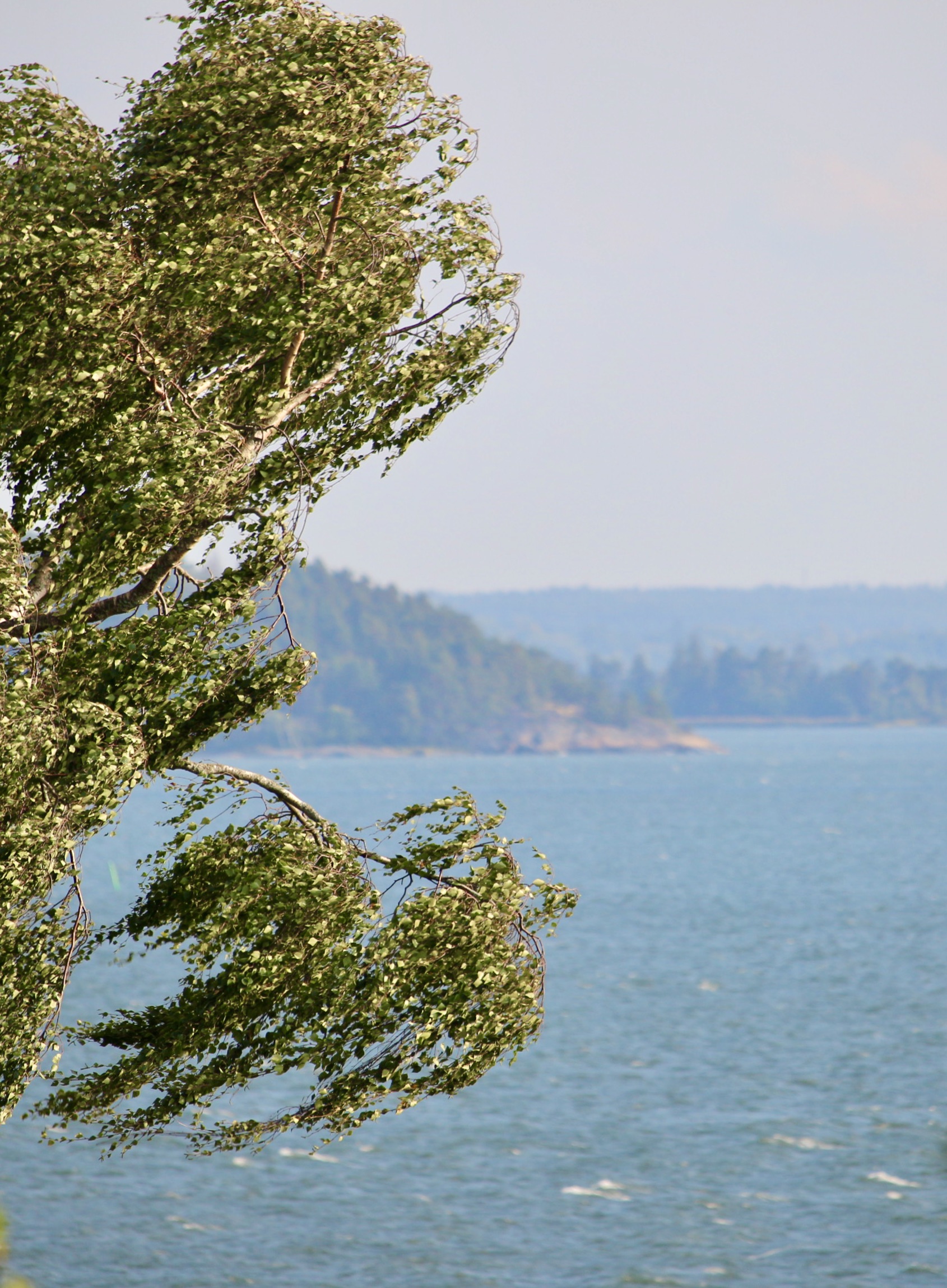 Vid tretiden kom solen och det är fortfarande blå himmel. Men det blåser en hel del.