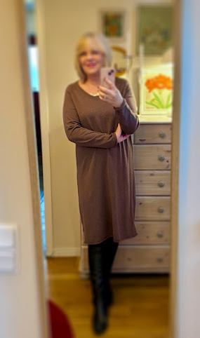 Tisdag och onsdag hade jag denna outfit... mullvadsfärgad stickad klänning.